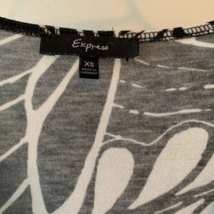 Express dress, black and white pattern. Dress is light weight and ties in front or back. Dress it pretty short but also looks really cute with black tights underneath