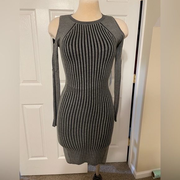 Express dress, long sleeve silver and black with cold shoulder. Medium