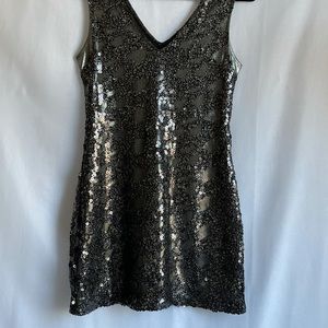 Express sequin dress . Sleeveless, open V-neck and V-back.