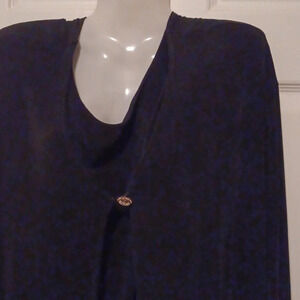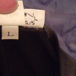 like new. has very soft, heavy fabric. sparkly button. it says size L, but it is XL or oversized.