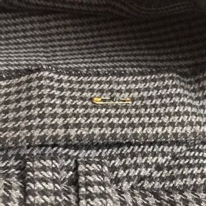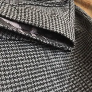 Grey/black herringbone pattern. Hem on one side is out- needs a quick tack. Currently held by safety pin which you cannot see from the outside. I offer bundle discounts!