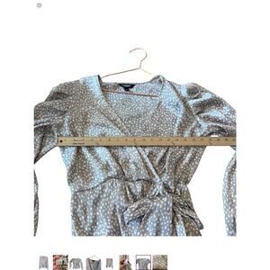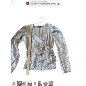 Elevate your wardrobe with this chic Express faux wrap blouse. Featuring a flattering side tie and stylish puff sleeves, this satin top is perfect for adding a touch of elegance to any outfit. In excellent condition and ready to wear. Grab it now and add a sophisticated flair to your closet! Size Medium.