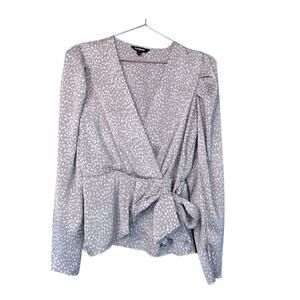 Express factory faux wrap with side tie puff sleeve satin blouse size medium
