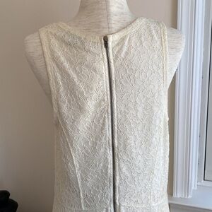 Express cream / off white colored fit and flare lace dress. Stretchy knit fabric. Fully lined with a fitted scoop neck tank top and flared mini to knee length skirt. Exposed back zipper. Size large.