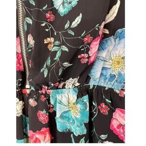 Express floral front zipper romper. Long sheer sleeves. Lined. Front zipper closure.