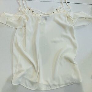 Express flowy chiffon lace up cream ruffle top ❤️ size small, great shape! Great deals on bundles!