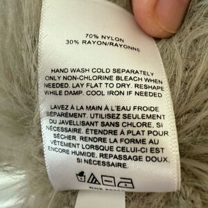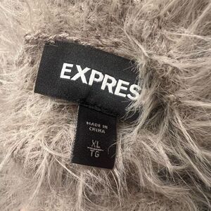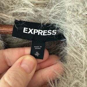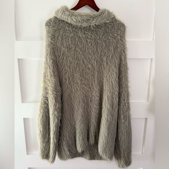 New without tags. Extra large sweater, super soft and fuzzy. Gray fur like material. Lots of stretch. Approx measurements across chest 24” length 32”