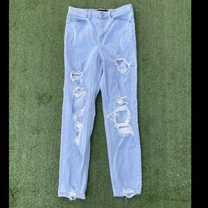 Express girlfriend high rise jeans size 0 Preowned super distressed casual date