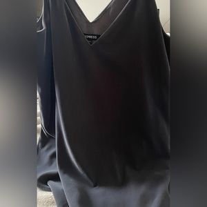 Express gray polyester blouse. The outside is very soft. It feels like the Valore the inside of the blouse has a sheer lining. This blouse is thick and an excellent condition.