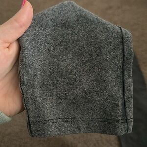 These are a dark gray faded wash legging they are soft. They are stretchy. They are a size small they are full length. Elastic at the waistband.