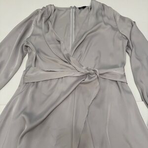 Express gray long sleeve dress satin midi length size M
