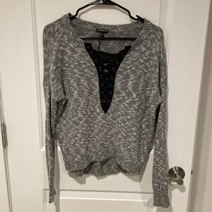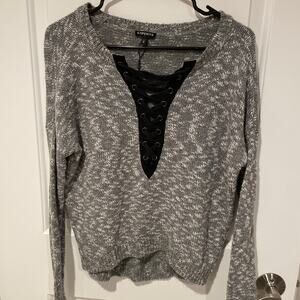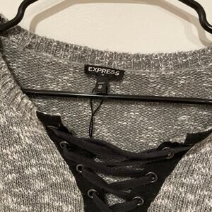 Express grey sweater criss cross neck size XS