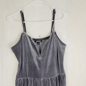 Express grey velvet jumpsuit Size medium sweetheart neckline Retro Glam Y2K