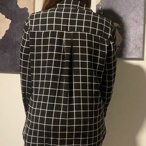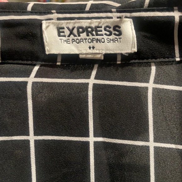 express grid pattern button up light material Has a pink stain of acrylic paint on left arm