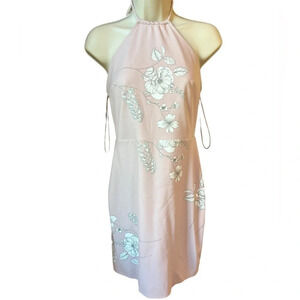Express, halter dress, mini dress, floral dress, pink dress, summer dress, vacation outfit, wedding guest, garden party, date night, spring style, feminine, romantic, excellent condition, size small