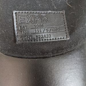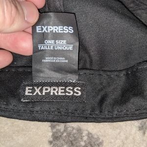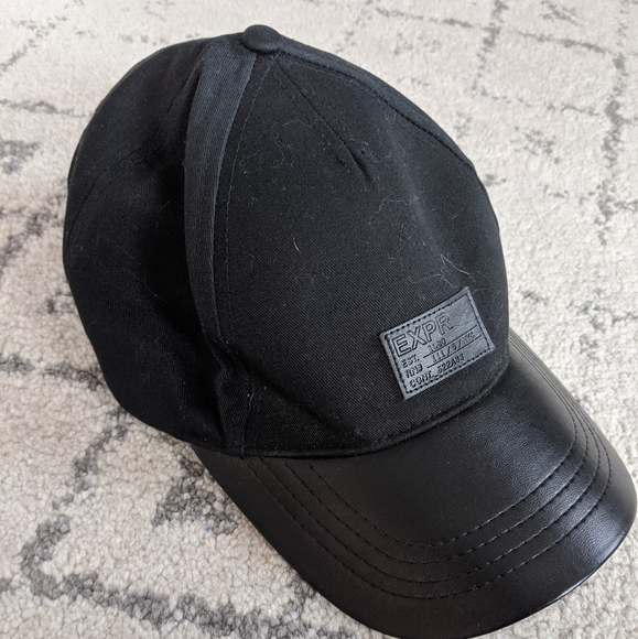 Black Express hat with leather brim. Adjustable. Never worn.