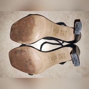 Express black heels size women's 6.5. There is a little nail polish mark inside heels (5th pic). Last 2 pics with tag was trying on in store and when they were brought home. The tag is no longer on them as there is some wear (nothing major).