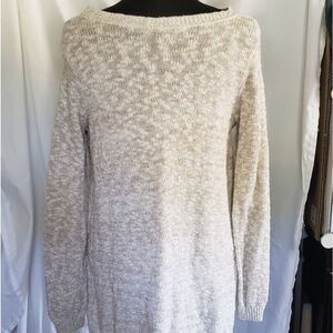 Gently used Express high split side lightweight sweater in shades of cream and white.