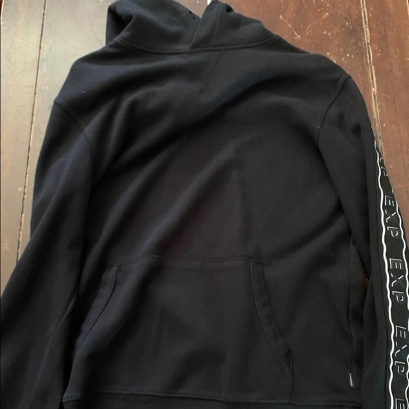 Hoodie is in good condition. String is somewhat tearing but there’s no hole. Size M