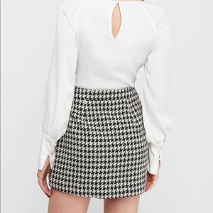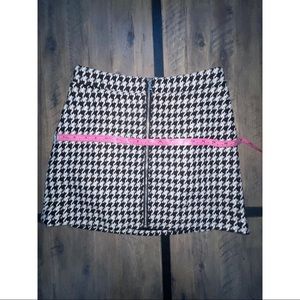 Dress up your look with this sleek mini skirt that features soft fabric, a classic houndstooth print and a full zip front. Pair it with a blouse and blazer for a look that's ready for work, weekend and beyond.