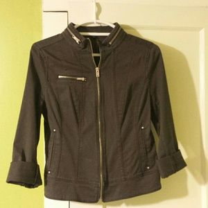 Charcoal gray cotton jacket. Perfect for cool spring nights. 3/4 length sleeves and has a bit of stretch. As with all the clothes I'm selling, barely worn.