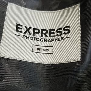 Black, tailored Professional jacket. Two button front closure. Two inside pockets. Two faux outside pockets. Great condition.