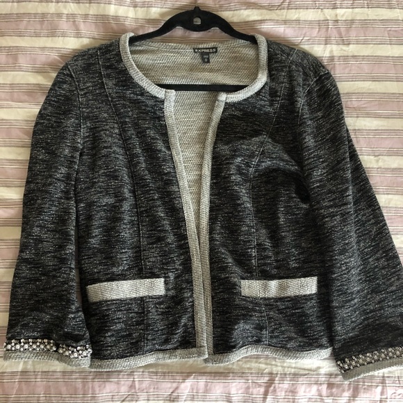 Express dress jacket. Size medium. Gray with beading detail on sleeves. Sleeves are 3/4 length. Worn once