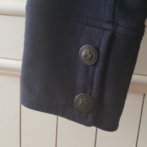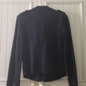 Black Express cotton jacket with button embellishment on sleeves and shoulders. Front pockets.