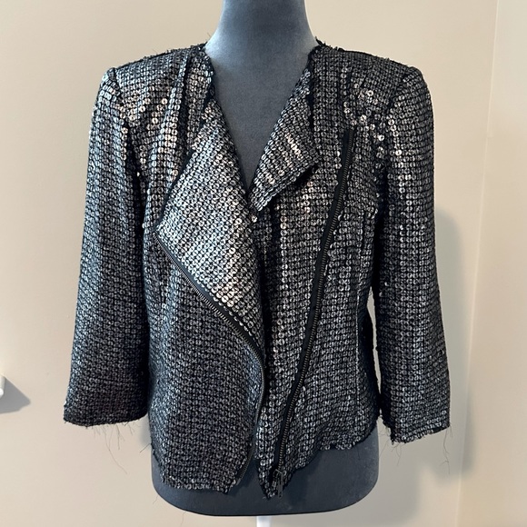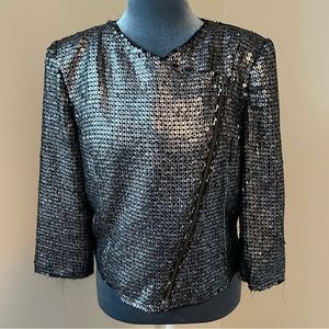 Express moto style jacket with silver sequins. Gently worn. Size SMALL.