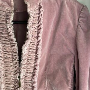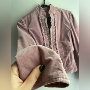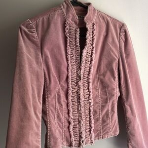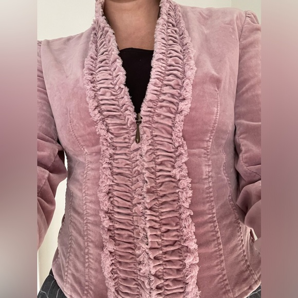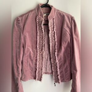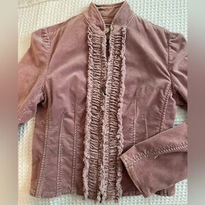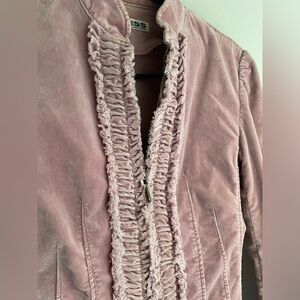 VTG Express velour jacket with ruffled front snd gathered waist. Double zipper with collar
