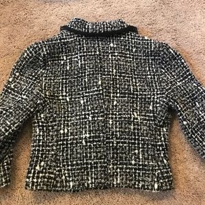 Express,black and white, short waist blazer. Iridescent buttons, fully lined, two front pockets, cute gold chain at inside waist band. 🖤🖤