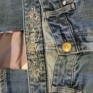 good condition. cute jeans size 8R. waist is 16 inches laying flat. inseam is 30 1/2 inches long.