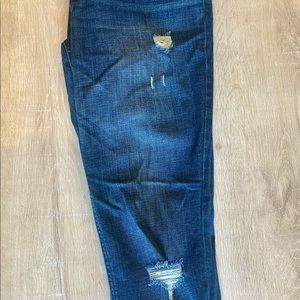 Express jeans have distressed knees and light distressing on the thigh. They are barely worn and a high rise legging.
