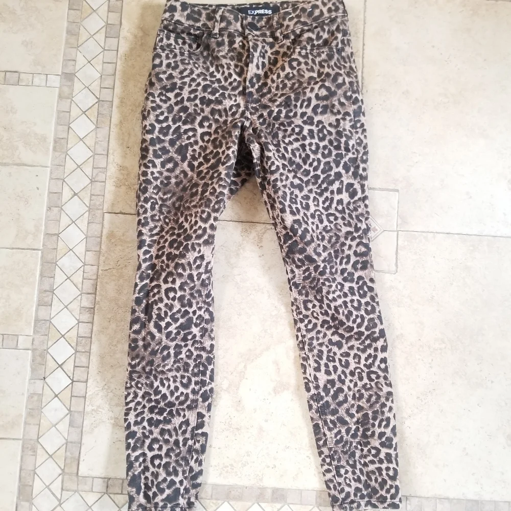 EXPRESS JEANS LEOPARD PRINT SIZE 0 ANKLE LEGGING HIGH RISE NEW