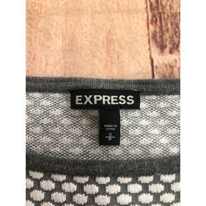 Express knit polka dot pattern top size S. Gray and white pattern. long sleeve with high low style. Rayon nylon blend. great shape great condition
