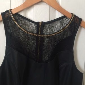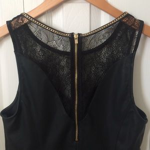 This shirt is a combination of leather and lace along with a gold chain circling the neck line. The back consists of a gold zipper. Perfect for going out. Never worn, tags still on item.