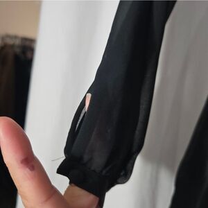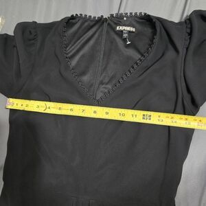 Express long sheer sleeve v-neck romper The sexy v-neckline, sheer sleeves, and attached sash make this a slinky weekend choice.