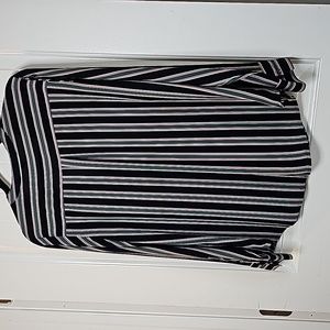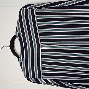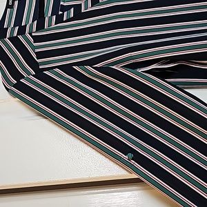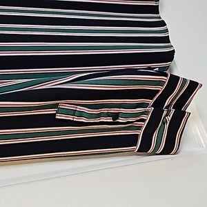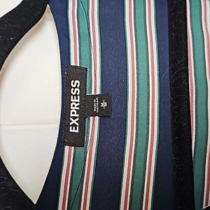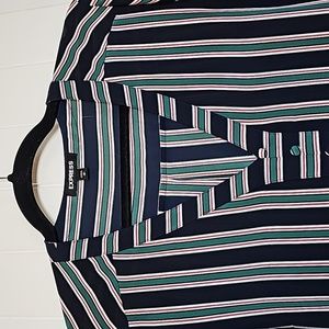 Express m navy blue/green/reddish pink striped long sleeve blouse