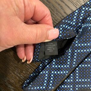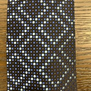Elevate your style with this sophisticated black and blue patterned tie. Perfect for any formal occasion or just to look good at work.