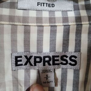 Express mens size small Windowpane Button Down long Sleeve fitted Dress Shirt
