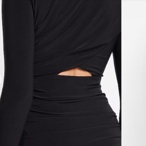 A classic mock neck, a flattering ruched waistband, and a back cutout.