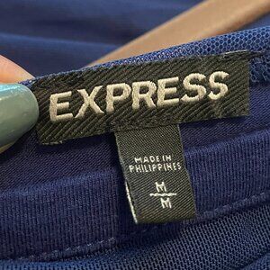 Add a touch of playful charm to your wardrobe with this navy blue mesh heart-shaped tank top from Express. The unique heart-shaped design adds a flirty detail, while the lightweight mesh fabric keeps it breathable and stylish. Perfect for layering or wearing on its own, this tank is ideal for casual outings, date nights, or summer events.