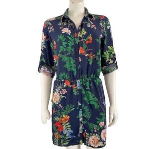 Express navy floral bird tropical dress size small.