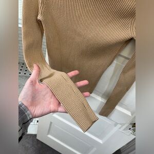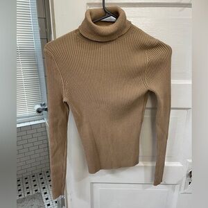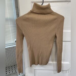 Express neutral, tan ribbed turtleneck, tight fitting soft size medium