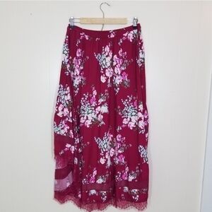 Express new with tags high low floral lace skirt sz medium burgandy WSK7