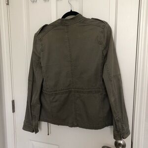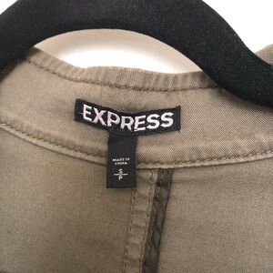 Chic olive utility jacket from Express. Features sleek design and practical pockets.