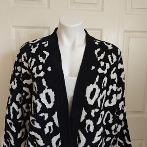 Warm Express open front leopard print cardigan sz S