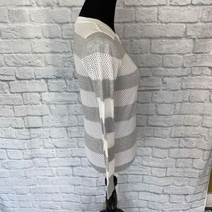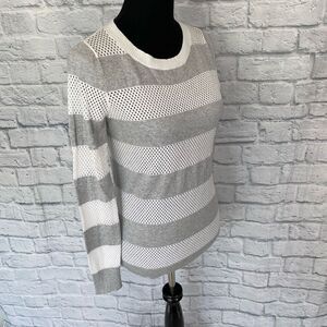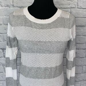 Express open knit Crewneck Longsleeve lightweight stripe sweater white grey sz S