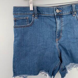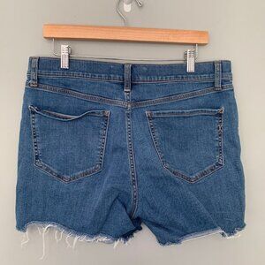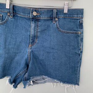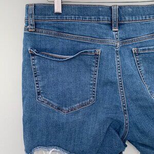 Express original midi mid rise distressed raw hem stretch denim jean shorts