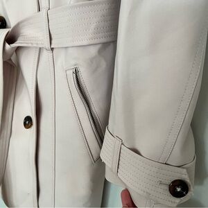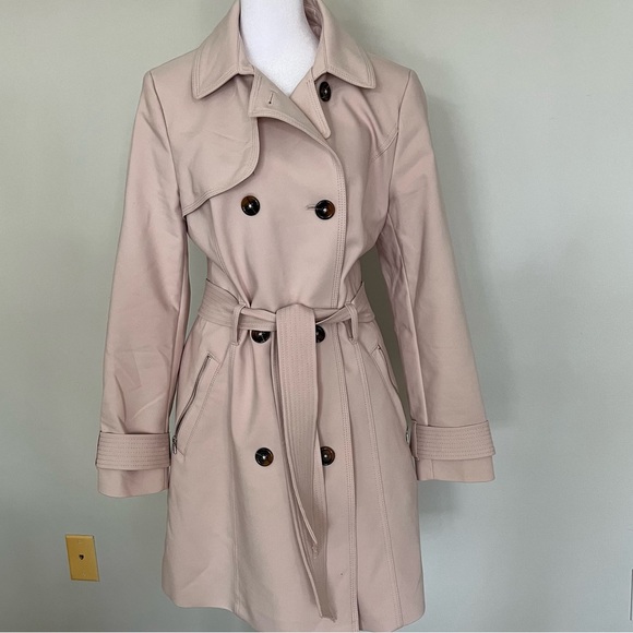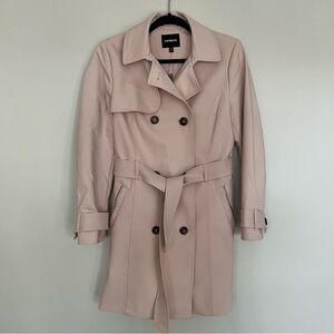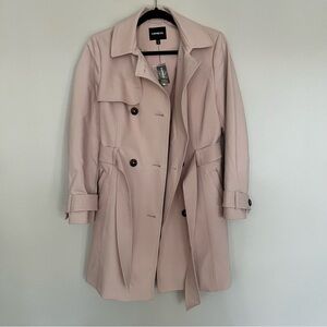 NWT pale pink express trench coat. No flaws. Diagonal zippered pocket and belted. Size medium.